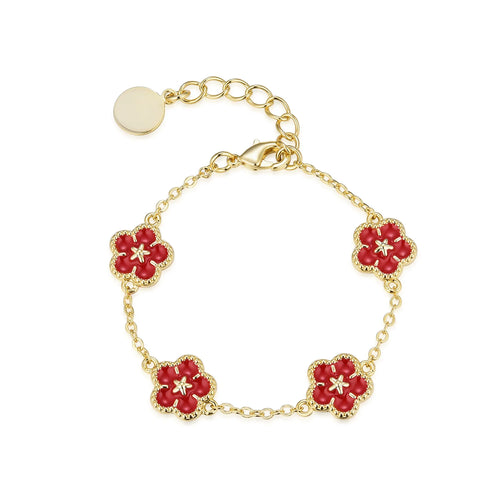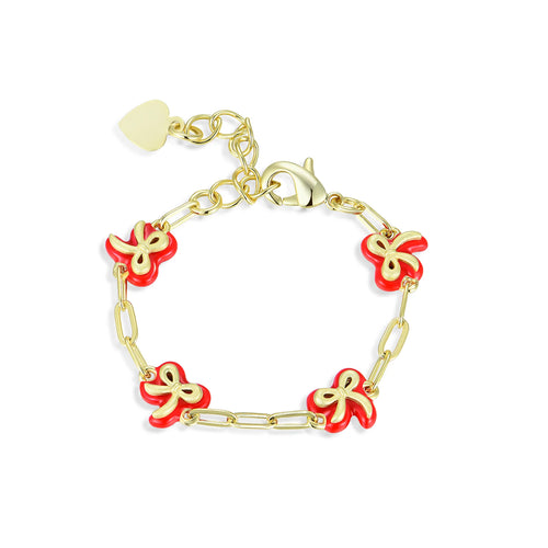 Dangling Red Bows and Gold Balls Charm Bracelet
