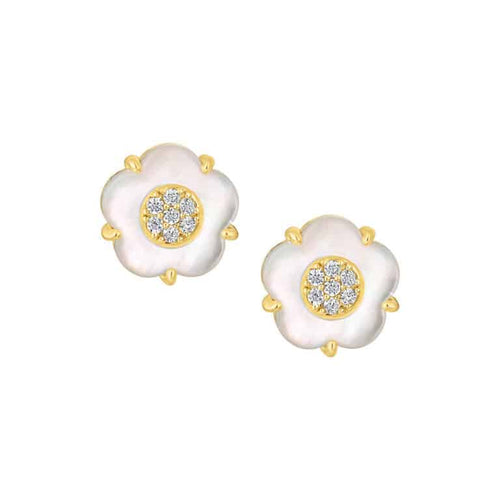 CZ-Filled Mother-of-Pearl Flower Stud Earring