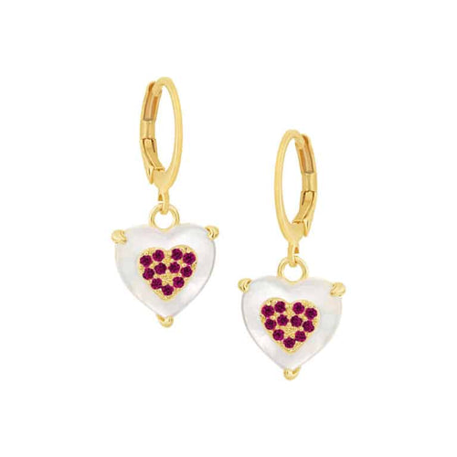 Medium 10mm CZ-Filled Mother-of-Pearl Heart Earring